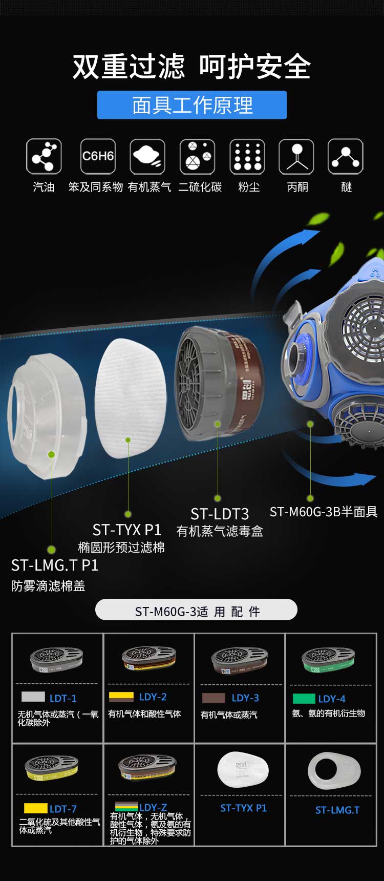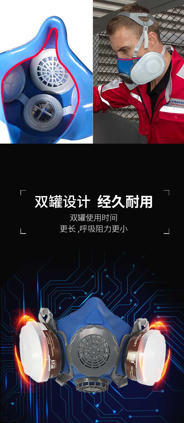 >面罩采用硅膠材質,內側360度全密封貼臉設計,面部密封性有保障 >頭部固定式,采用四點固定避免口罩移位 >傳聲膜設計,溝通交流無障礙