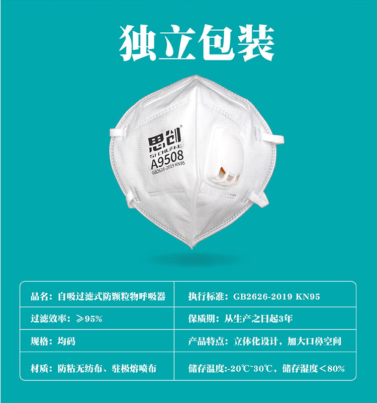 產品型號:A9508拋棄型防塵口罩(戴呼吸閥)